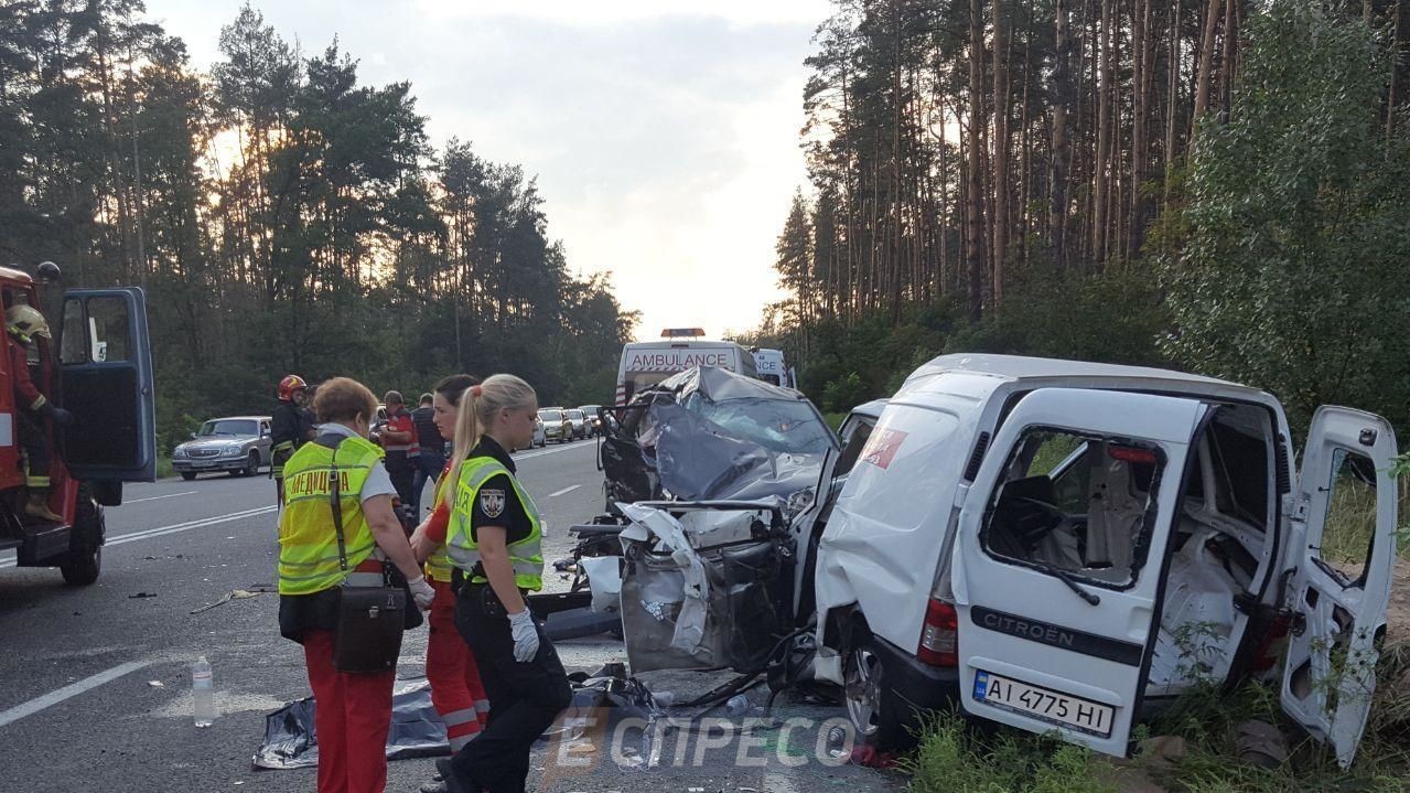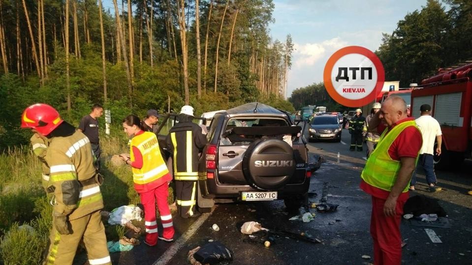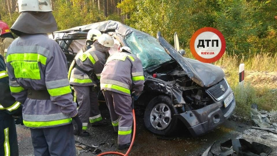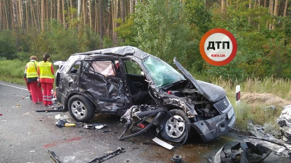 За попередньою інформацією, автомобіль Citroen, який їхав з боку Києва, врізався в бік позашляховика Suzuki, який, порушуючи правила дорожнього руху, здійснював розворот через дві суцільні смуги і не пропустив зустрічний автомобіль.