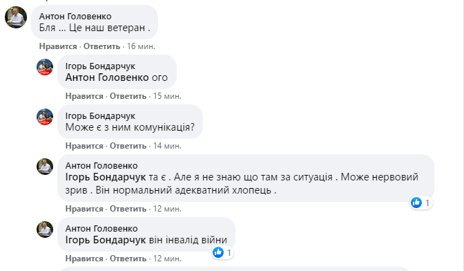В коментарях під відеороликом один з депутатів міськради Ірпіня Антон Головенко також розповів, що цей чоловік - ветеран війни.  Цю ж інформацію підтвердив кореспондент "СтопКору".