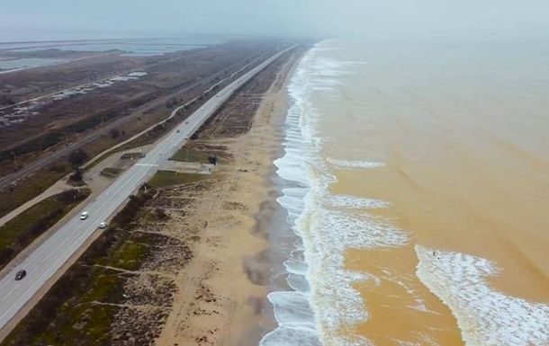"Цю частину узбережжя ми називаємо Кримськими золотими пісками. У них окрім зернистої частини піщаних фракцій є глиняста, мулиста. Тому під час зимового шторму воно все прибивається до берега - і виходить таке забарвлення", - сказав він.