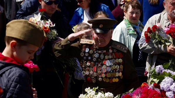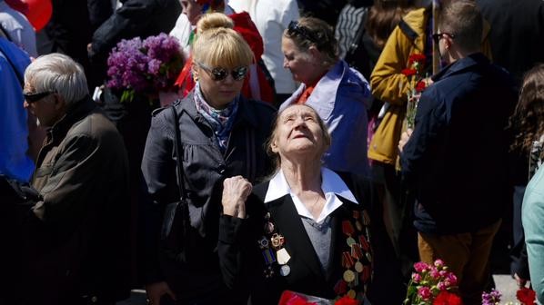 У Києві святкують 70-ту річницю перемоги над нацизмом. Вранці 9 травня на урочистостях з нагоди Дня Перемоги президент України разом з іншими політиками і ветеранами Другої світової війни поклали квіти до могили Невідомого солдата. У перших рядах колони йшли ветерани.