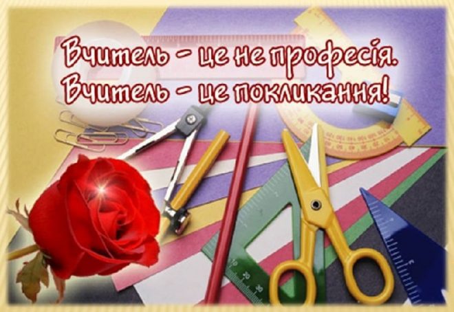 Вчитель — горде звання, яке за життя несуть тільки найзаслуженіші та найбільш гідні! Тож нехай же вчительські нелегкі будні приносять тільки радість і будуть плідними. Нехай учні будуть старанними — такими, якими можна пишатися. А в родині хай запанують щастя і затишок. Здоров’я, любові, достатку і всіх життєвих благ!