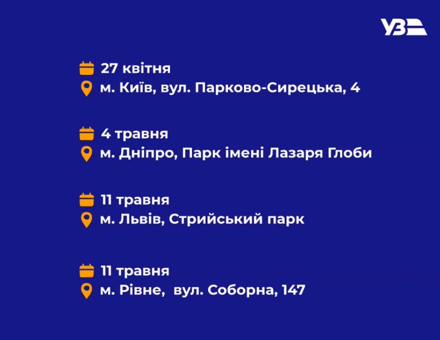 Графік руху поїздів дитячої залізниці по містах Київ, Дніпро, Львів та Рівне