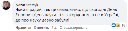 «Який я радий, і як це символічно, що сьогодні День Європи і День науки – і я закордоном, а не в Україні, де про науку давно забули!», - доцент Львівського національного університету ім. Івана Франка, запрошений дослідник Юридичної школи Нотр-Дам Назар Стецюк.