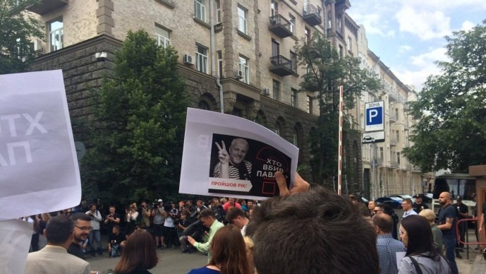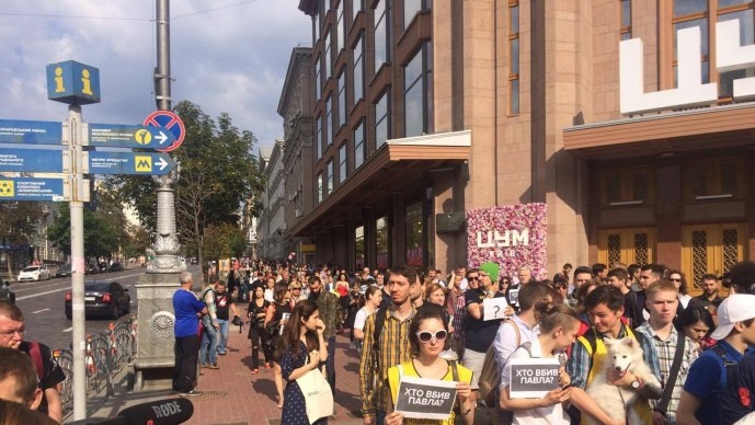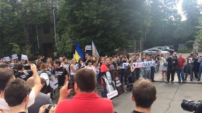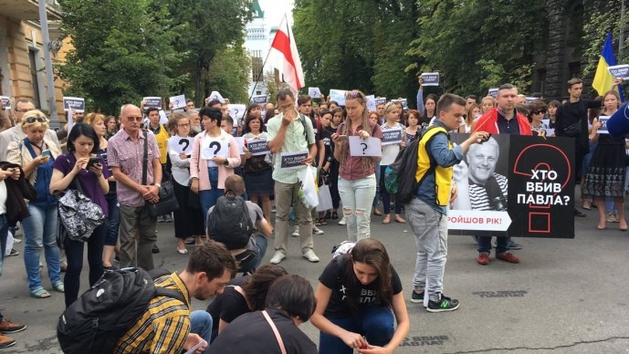 Активісти писали на асфальті чорною фарбою "Хто вбив Павла?", запалювали свічки в його пам'ять, тримали в руках аркуші з великим знаком питання та вимагали від української влади знайти організаторів резонансного вбивства . Прямо до дверей МВС учасники прикріпили банер "Хто вбив Павла?"