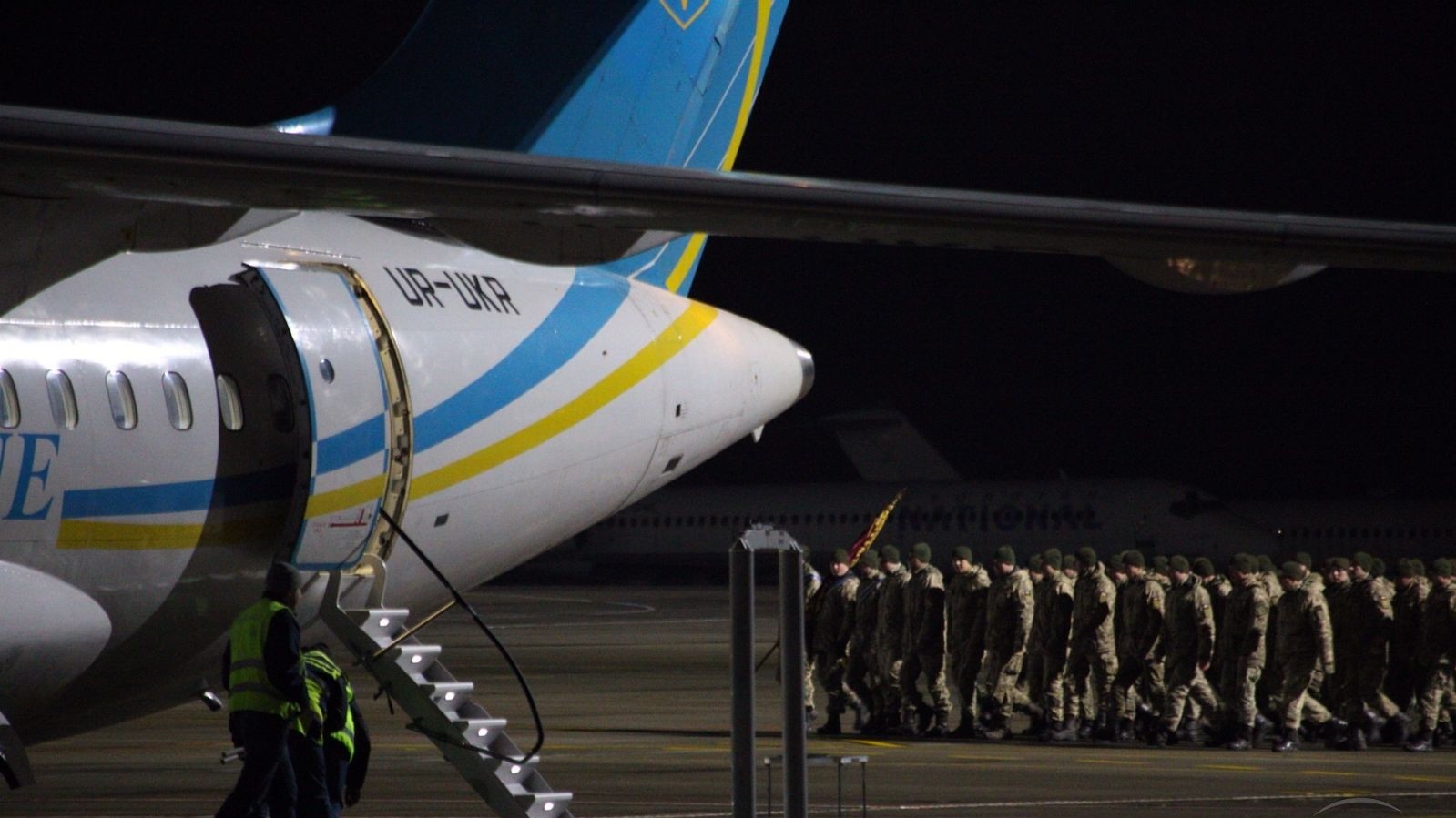 На злітно-посадковій смузі звільнених з полону українців, більшість з яких є військовослужбовцями Збройних сил України, зустрічають бійці 92-ї бригади, представник президента у Верховній Раді Ірина Луценко, а також представники обласної влади.