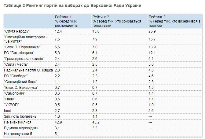 Якби вибори до Верховної Ради України відбувалися в середині квітня, то до нового складу Верховної Ради пройшли б шість партій. Такі дані свіжого соціологічного опитування опублікував Київський міжнародний інститут соціології.