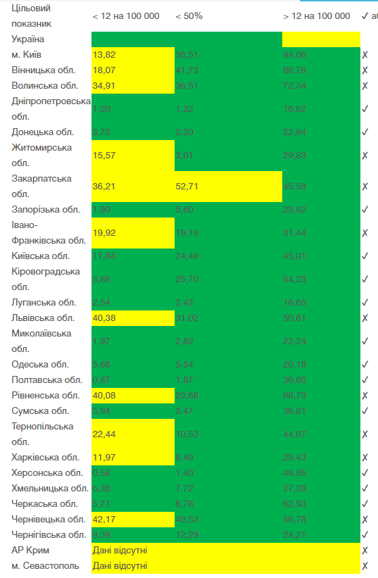 Київ та десять областей України не готові до послаблень карантину, оскільки в цих регіонах перевищено показник інцидентності захворюваності на коронавірус. Крім того, Закарпатська область не проходить відразу за двома пунктами. Про це повідомляє пресслужба Міністерства охорони здоров'я в п'ятницю, 19 червня.