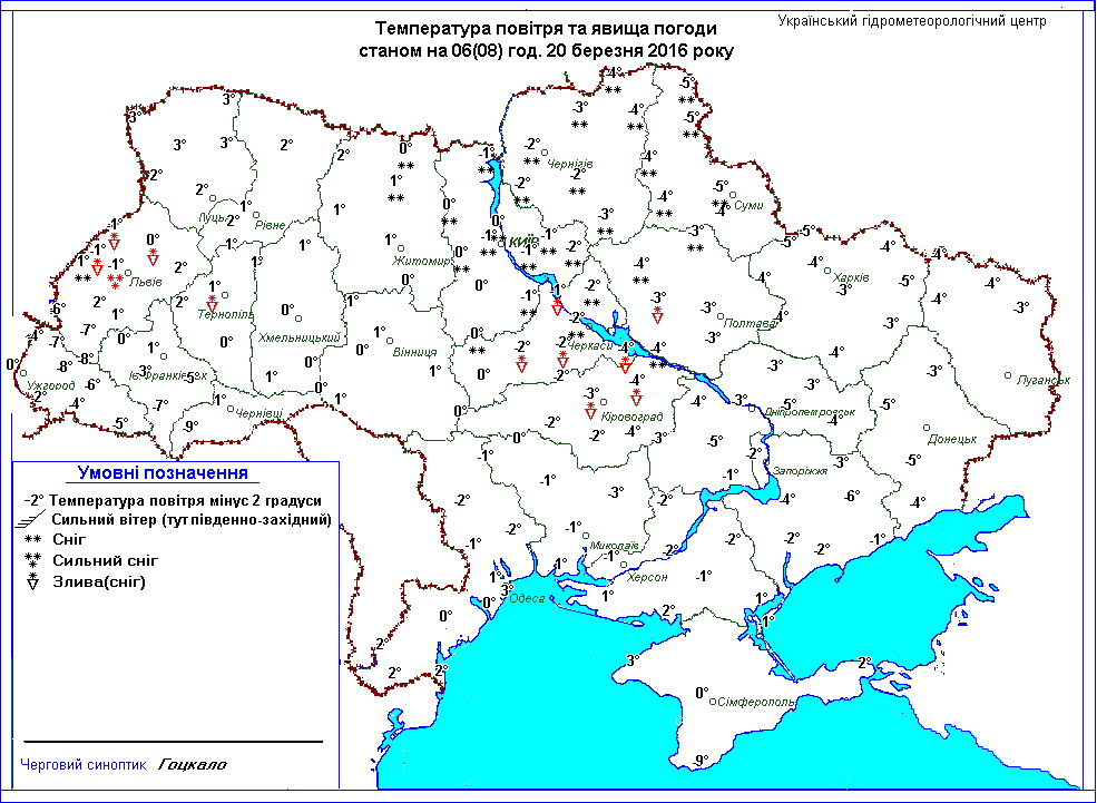 Згідно з прогнозом Укргідрометцентру, в неділю сніг очікується в північних, центральних, східних, а також у Рівненській і Волинській областях, місцями з дощем. Вітер північно-західний і західний, 7-12 м/с, пориви 15-20 м/с. У Києві помірний сніг та мокрий сніг, посилення вітру до 15-20 м/с. Температура вдень 1-3° тепла.