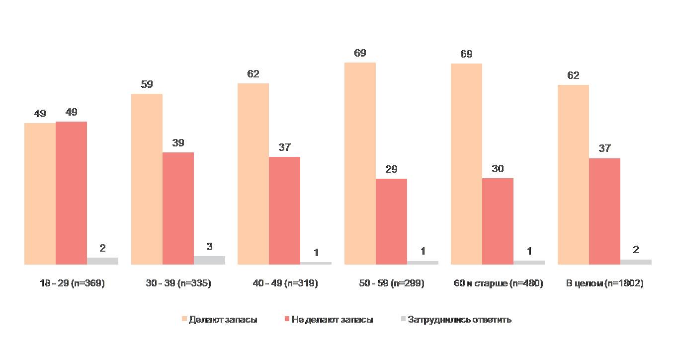 Найбільш високу активність у заготівлі продуктів проявили особи передпенсійного та пенсійного віку - від 50 років і старше - близько 70%, а також сільські жителі (71%). А ось рідше інших в процес заготівлі продуктів включалася молодь (49%), а також жителі обласних центрів (51%).