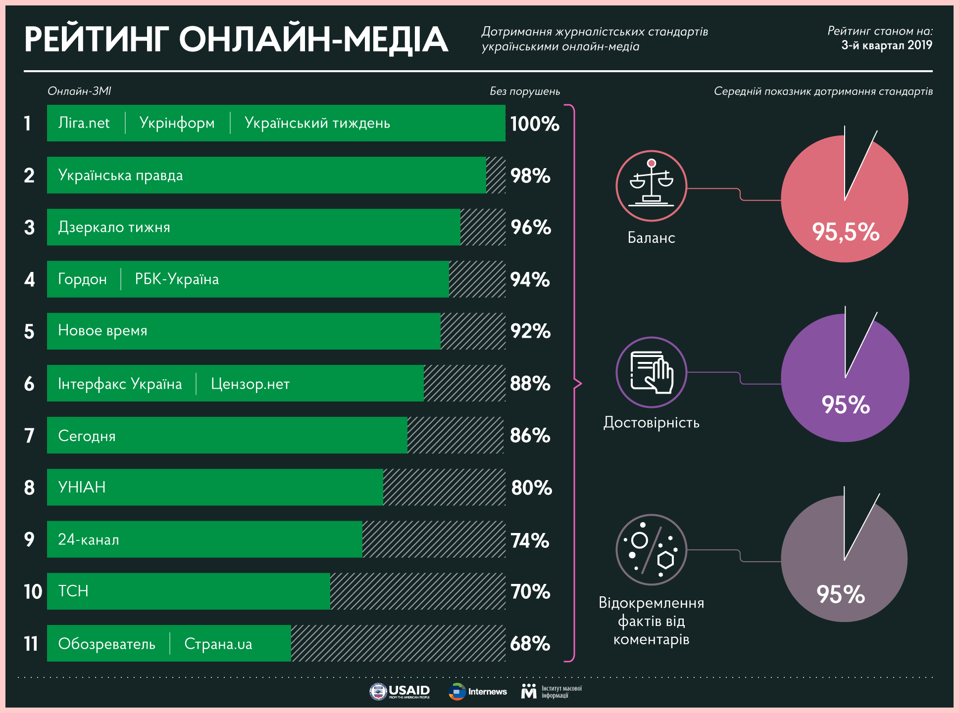 У результаті моніторингу ІМІ склала наступний рейтинг онлайн-медіа: