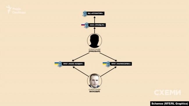 Відповідно до російського реєстру нерухомості, власницею 14% частки земельної ділянки, на якій розташований Atlantic, та відповідної частки самого бізнес-центру є компанія «Прайд-М», якою керує Олександр Єрмольчук. За даними «Схем», особа з таким іменем та прізвищем щонайменше у період 2012-2013 років очолювала два українських акціонерних товариства – «Мако Холдінг» та «Маринсервіс». Бенефіціаром цих підприємств, відповідно до українського реєстру юридичних осіб, був Олександр Янукович.