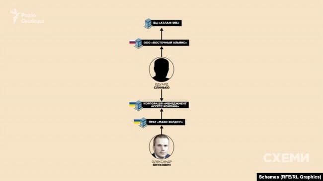 Крім того, за адресою бізнес-центру Atlantic також прописана інша фірма - «Восточний альянс». Нею володіє Едуард Слинько. Особа з таким іменем та прізвищем раніше керувала українською корпорацією «МЕНЕДЖМЕНТ АССЕТС КОМПАНІ», бенефіціаром якої через «Мако Холдінг» також був Олександр Янукович.