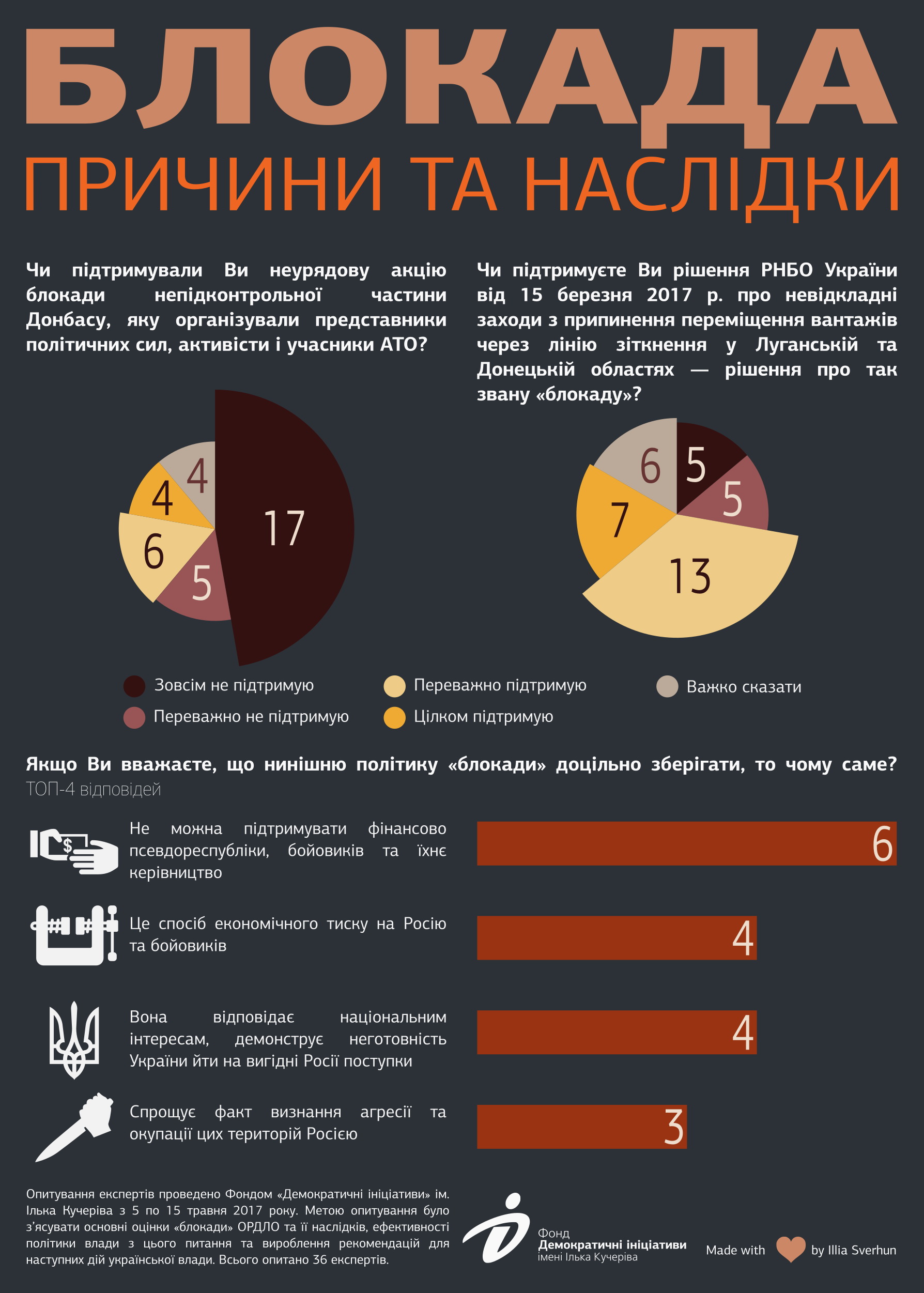 Із 36 експертів, опитаних фондом "Демократичні ініціативи", 22 висловилися проти громадської акції блокади окупованих районів Донецької і Луганської областей.