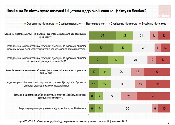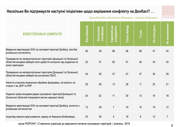 Ідеї проведення виборів на окупованій території за будь-яких умов, амністії бойовиків російсько-терористичних військ і широкої автономії Донбасу, включно з правом на створення загонів народної міліції, мають відносно велику підтримку в східних регіонах країни. І серед виборців "Опозиційної платформи-За життя".