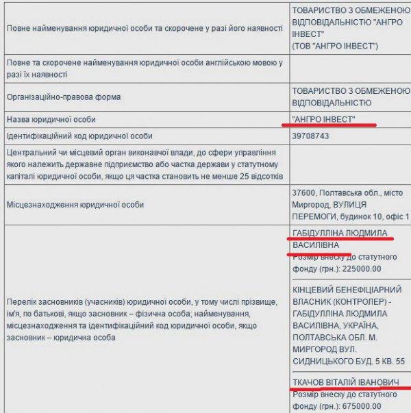 Фірма "Ангро Інвест" була створена в Миргороді в березні 2015 року. Заснували її - Віталій Ткачов і Людмила Габидулліна. Остання також працює у фірмі з схожою назвою - "Ангро Нафта", яка раніше займалася будівництвом житла на Полтавщині. Засновником ПП "Ангро Нафта" є якийсь Роман Дружбін, який за даними Полтавських ЗМІ, і подавав клопотання про отримання "Ангро Інвестом" восьми газових родовищ "Голден Дерріка".
