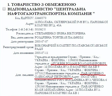 "Примітно те, що цей Роман Дружбін раніше заснував ТОВ "Центральна нафтогазотранспортна компанія" спільно з полтавським бізнесменом Олександром Павлюченком", - підкреслює журналіст.