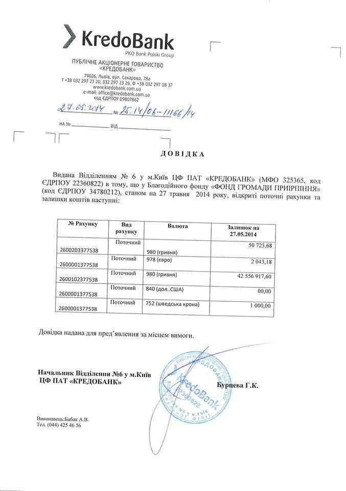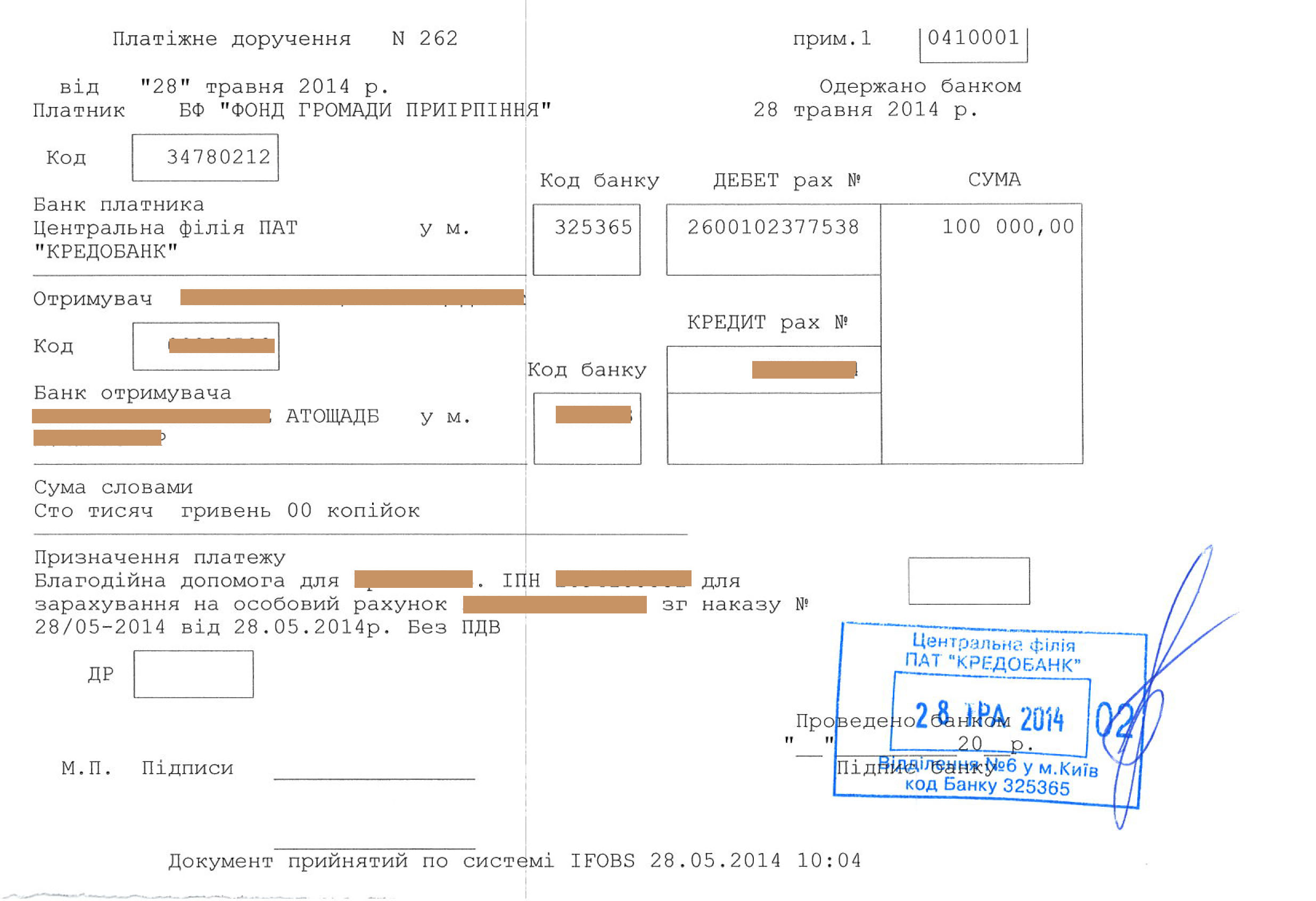 А якби звернулися, то отримали б підтвердження того, що на рахунку Фонду, призначеного для збору коштів для сімей Небесної Сотні, зараз знаходиться 42,5 млн грн. Остання виплата була зроблена 28 травня 2014 року у розмірі 100 тис. грн одній з київських сімей. Станом на 28.05.2014 р. допомога виплачена вже 57 сім'ям на загальну суму 5 565 307, 97 (плюс 863 704,08 грн податків), а також 8 290 686 грн витрачено на лікування поранених. Щомісячний аудит коштів здійснюється аудиторською компанією E&Y.
