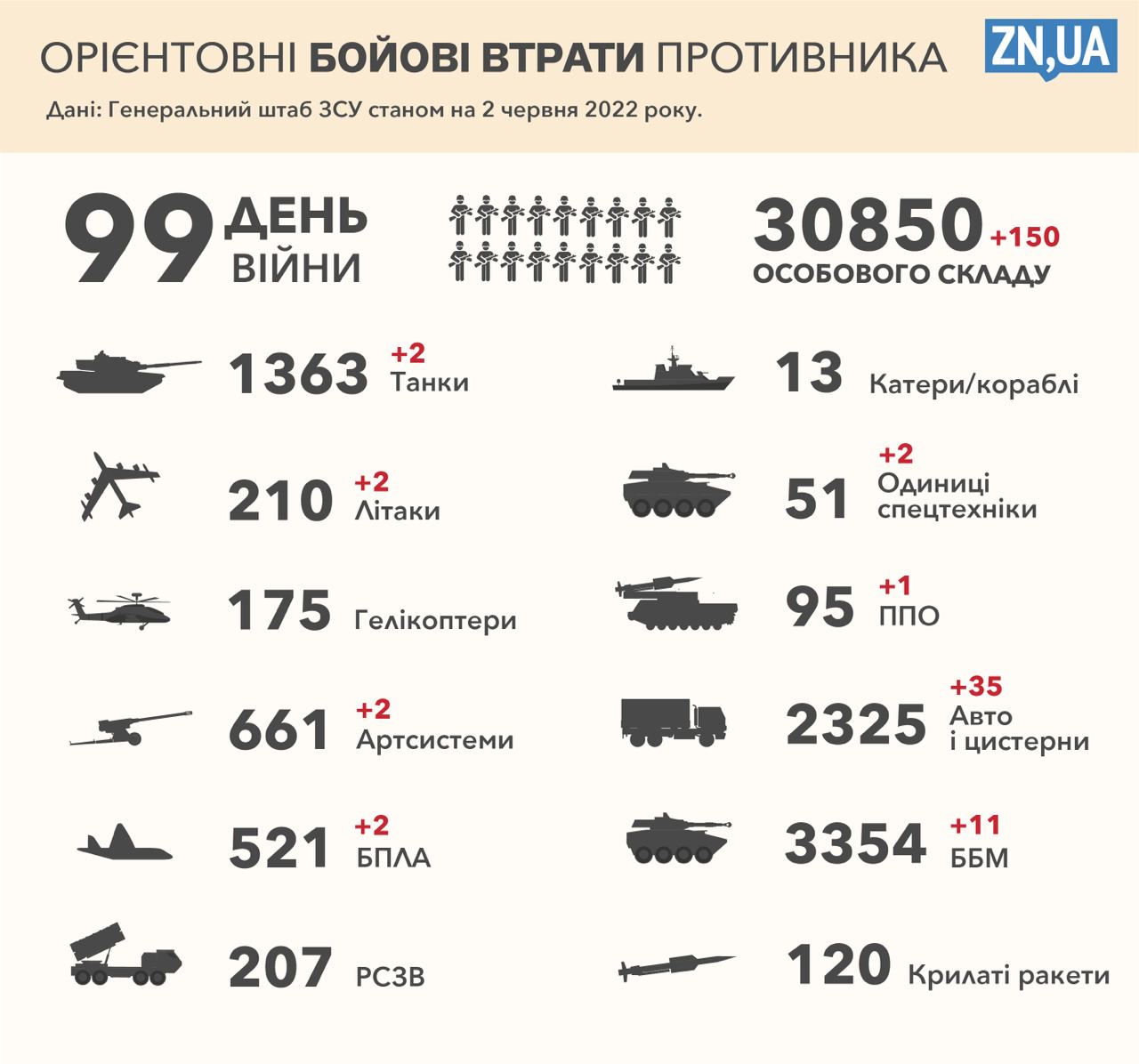 Загальні бойові втрати противника з 24.02 по 02.06 орієнтовно склали: