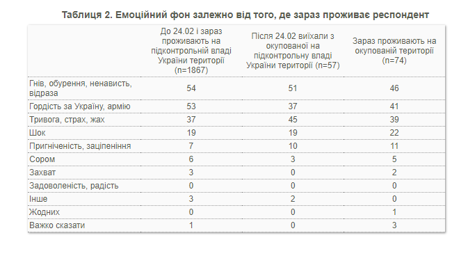 Водночас навіть серед тих, хто проживає в умовах окупації, 41% відчувають гордість за Україну і армію.