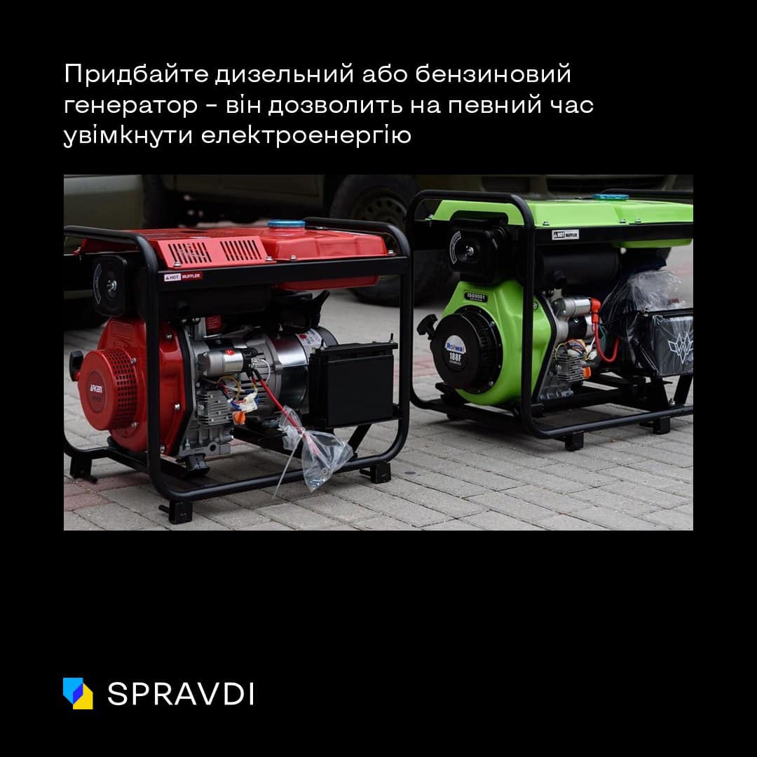 - придбати генератор (дизельний або бензиновий).