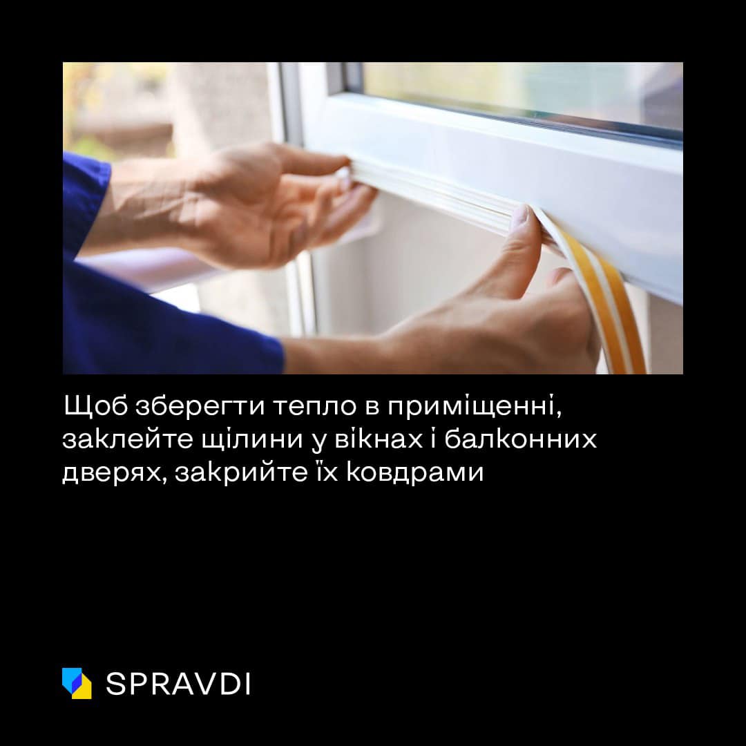 Щоб зберегти тепло у приміщення можна заклеїти щілини у вікнах, дверях та балконах.