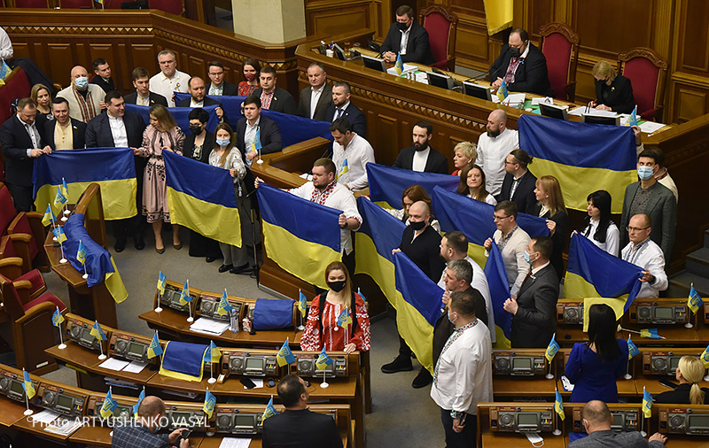 У середу, 16 лютого, у Верховній Раді відбулися урочистості з нагоди Дня єднання, започаткованого Указом президента України. У рамках заходів відбулася церемонія підняття Державного Прапору України та занесення Прапору до зали засідань Верховної Ради України.