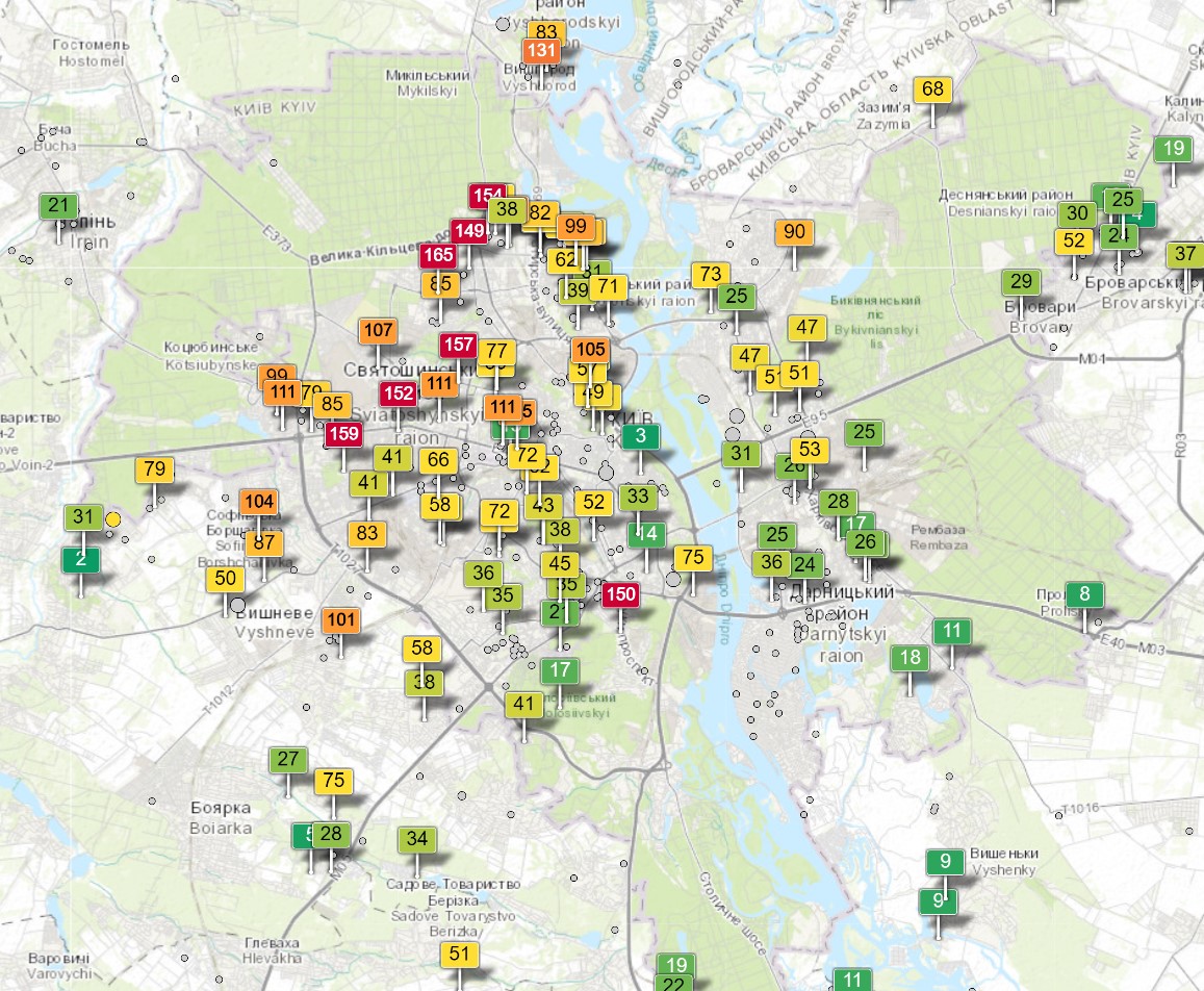 Від ранку 1 вересня Київ накрив смог та значно погіршилась якість повітря. Так за даними моніторингу Індексу якості повітря, подекуди на північних та західних околицях міста рівень забрудненості характеризується як «нездоровий».