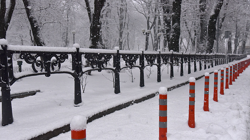 В ніч на середу в центральних та північних областях України пішов густий мокрий сніг, який місцями переходить у дощ. У Києві, де температура повітря тримається близько нуля, сніг укрив землю, обліпив дроти і гілки, порадувавши фотолюбителів і додавши клопоту водіям та комунальникам.