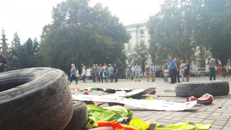 За даними відділу комунікації поліції Києва, коло 8:30 до будівлі в Печерському районі Києва підійшли приблизно 50 осіб. З собою вони принесли автомобільні шини, розкидали сміття і заблокували вхід до установи.