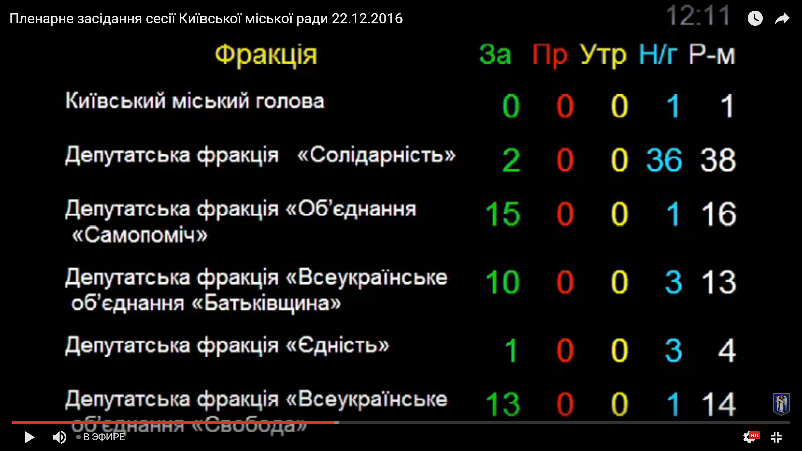 Під час голосування в президії був присутній міський голова Києва Віталій Кличко.