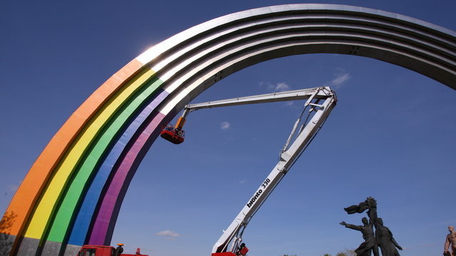 Столичну Арку Дружби народів почали покривати кольоровим папером, щоб до Євробачення-2017 вона переливалася всіма кольорами веселки. Слоганом конкурсу в цьому році буде Celebrate Diversity! (Хай живе різноманітність!), і арка теж тимчасово отримає ім'я Arch of diversity (Арка розмаїття).