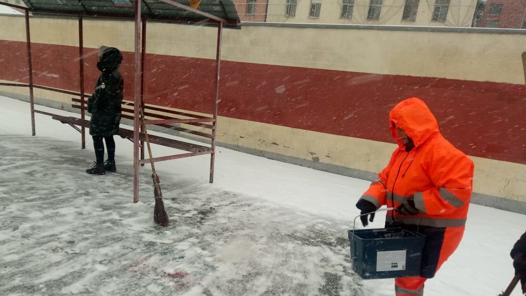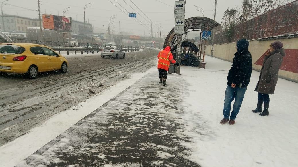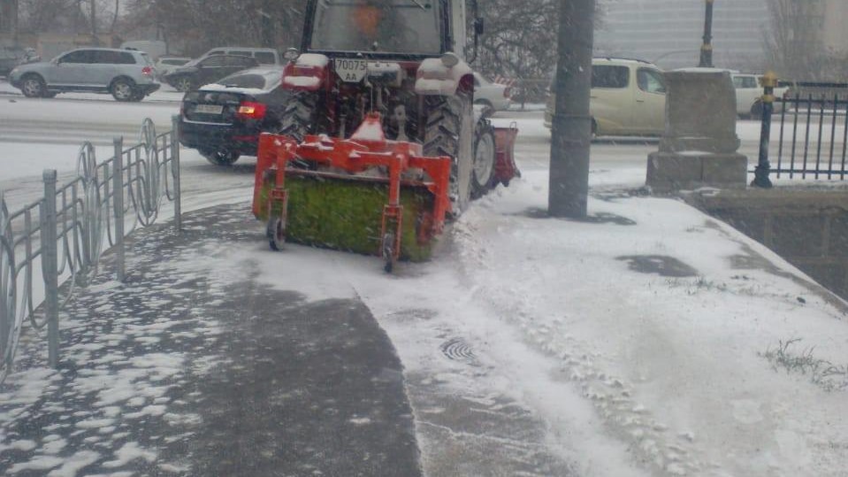 З самого ранку у всіх районах столиці обробляють дороги засобами від обмерзання, а тротуари, зупинки громадського транспорту та підходи до наземних та підземних пішохідних переходів очищають від снігу. В роботі задіяна як великогабаритна спецтехніка, так і невеликі маневрові снігоприбиральні машини, які дозволяють оперативно прибирати тротуари.