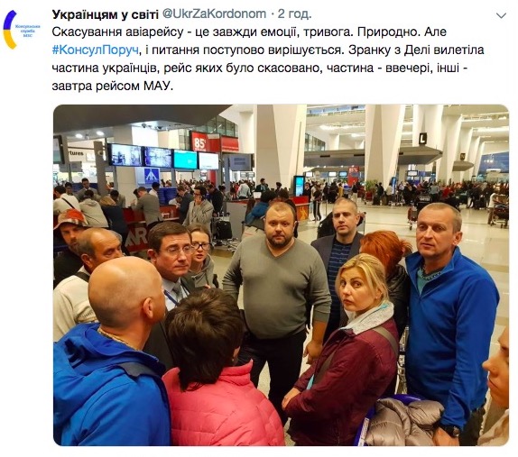 "Питання поступово вирішується. Зранку з Делі вилетіла частина українців, рейс яких було скасовано, частина – ввечері, інші – завтра рейсом МАУ", - йдеться в повідомленні.