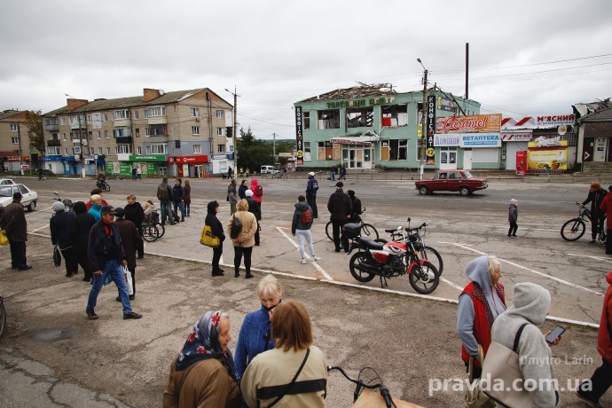 Місто було в окупації пів року. Весь час не припинялися обстріли – зараз про них нагадують пробиті мінами будинки, розтрощений торговий центр навпроти міськради та всипані битим склом вулиці. В місті немає газу, води та світла. Нещодавно з'явився зв'язок і, відповідно, мобільний інтернет. В місті ходили гривні, а незадовго до деокупації в обігу з'явилися рублі.