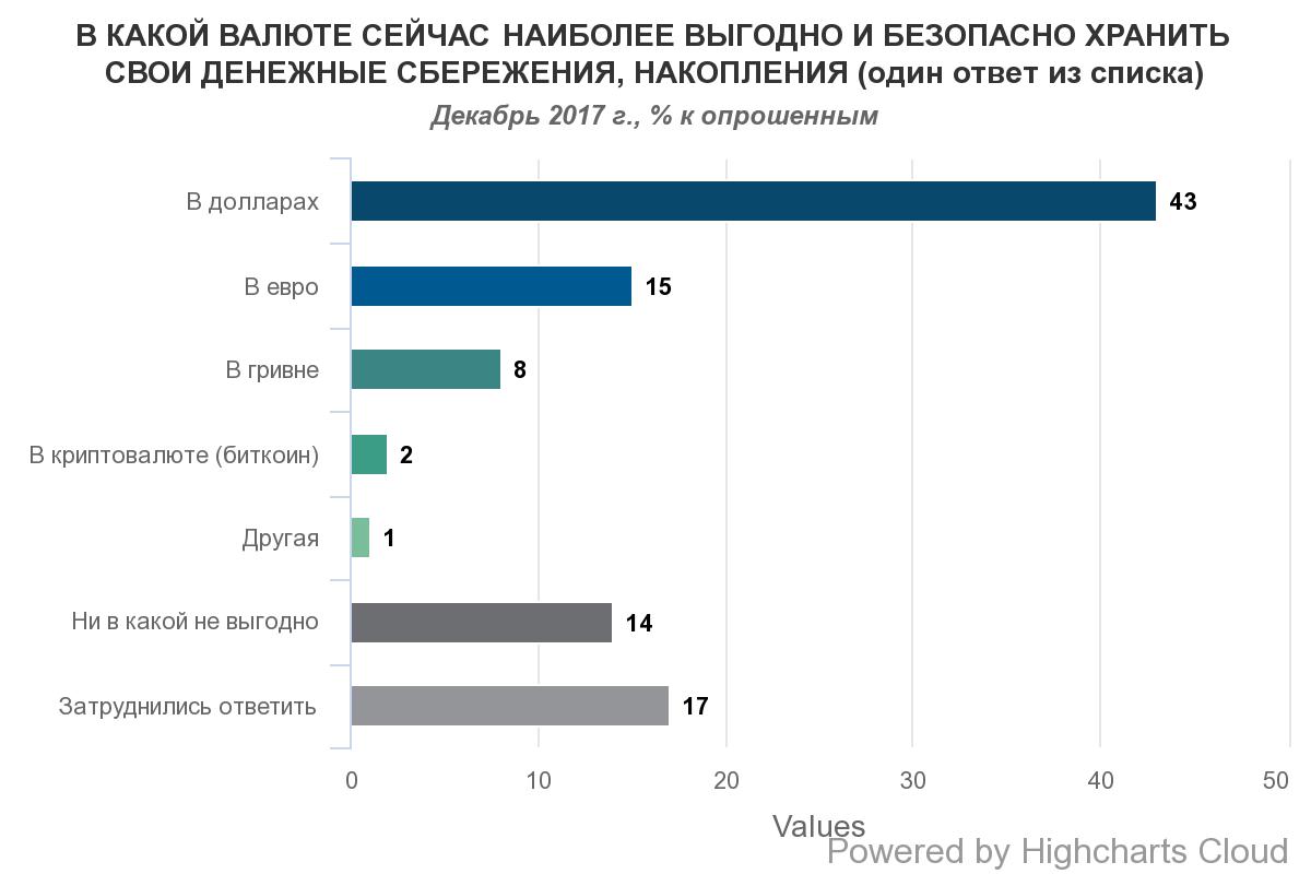 Як свідчать дані опитування Research & Branding Group, у грудні 2017 року кожен другий українець (50%) стежив за курсовими коливаннями на валютному ринку, тоді як 44% респондентів не цікавилися курсом валют.