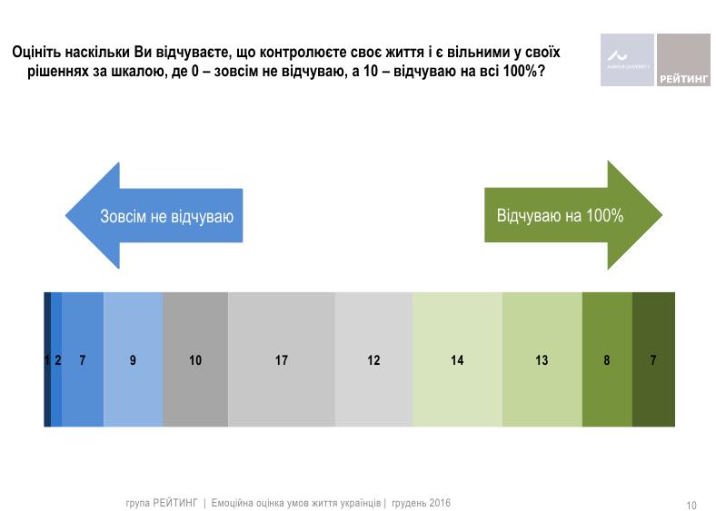 При цьому 19% заявили, що майже не мають ніякого контролю над власною долею.