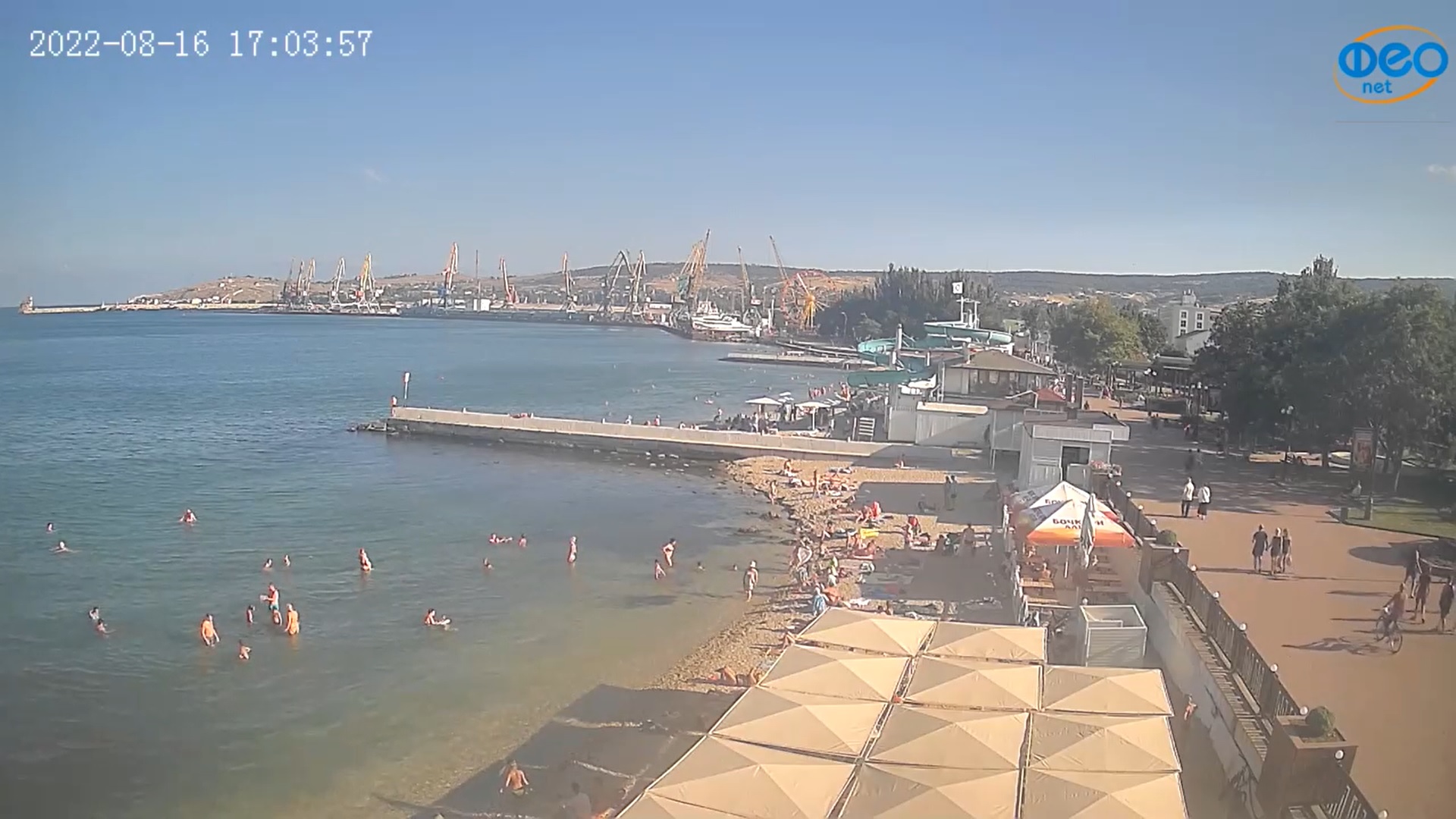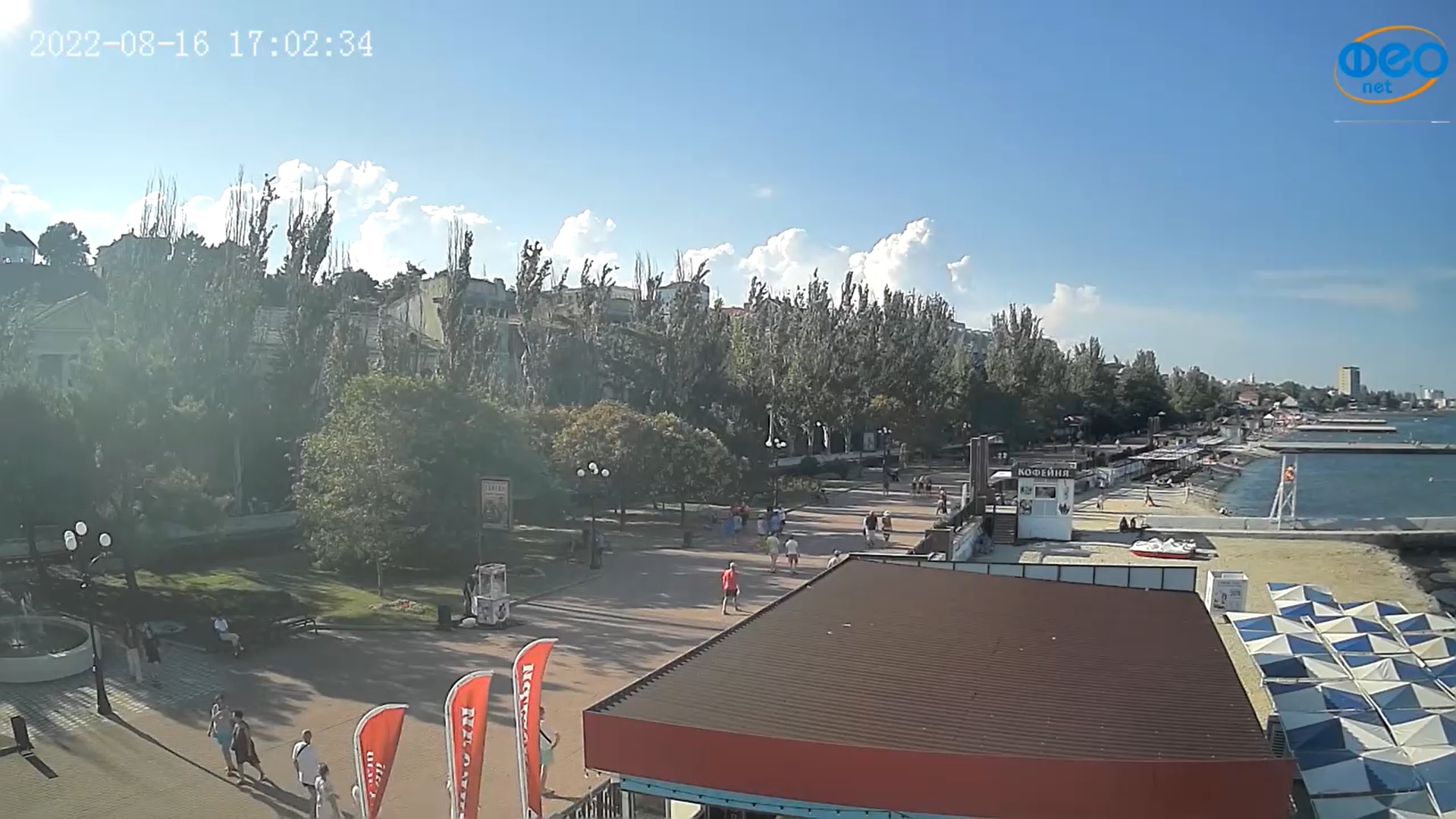 Якщо орієнтуватися на відео з веб-камер, то на сьогоднішній день у Феодосії практично немає відпочиваючих. На пляжі «Камінці» безлюдно. На пляжі біля морського порту — поодинокі люди сидять біля води. Майже ніхто не купається.