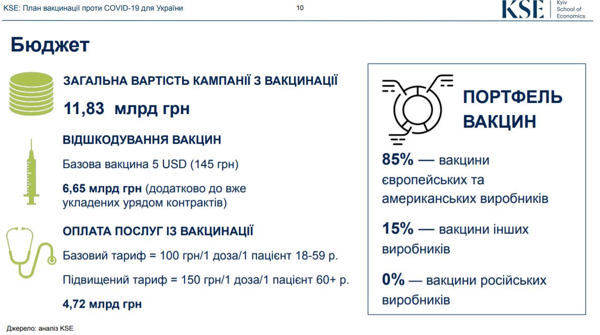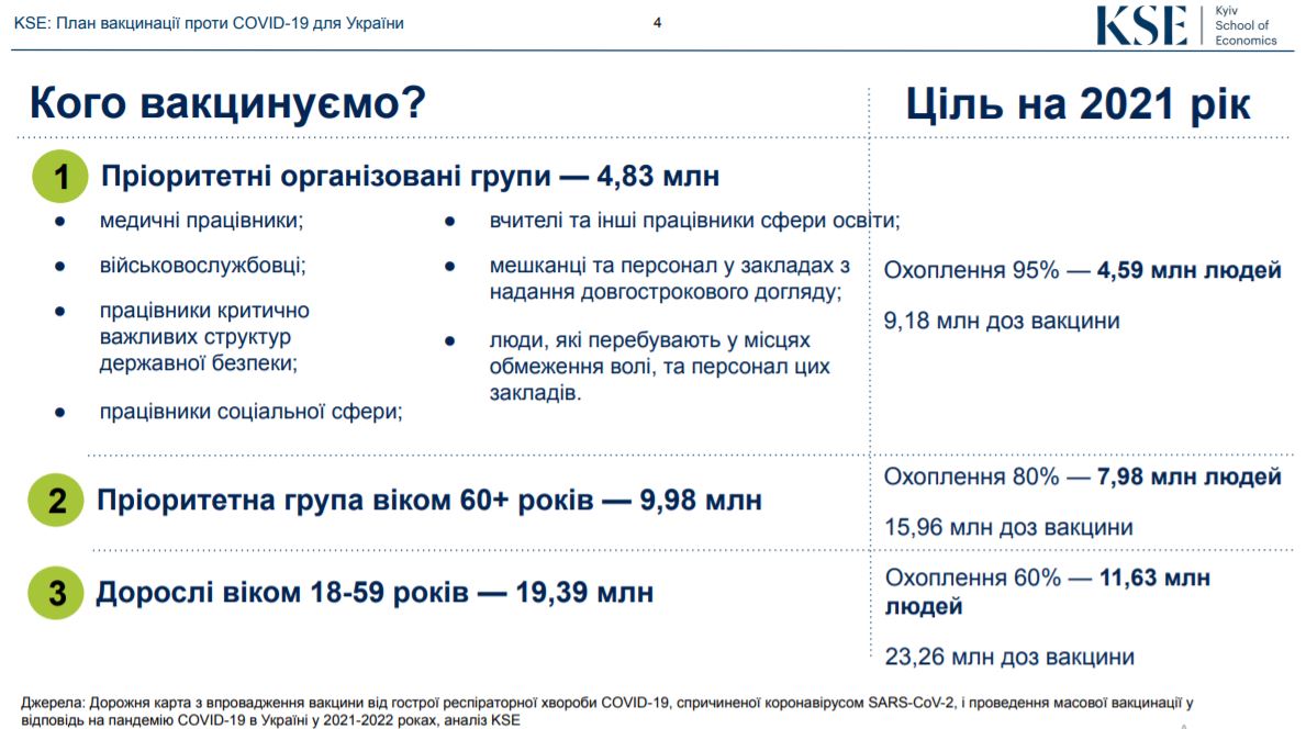 Про це повідомляється у дослідженні Центру економіки охорони здоров'я Київської школи економіки "План вакцинації проти COVID-19 для України".