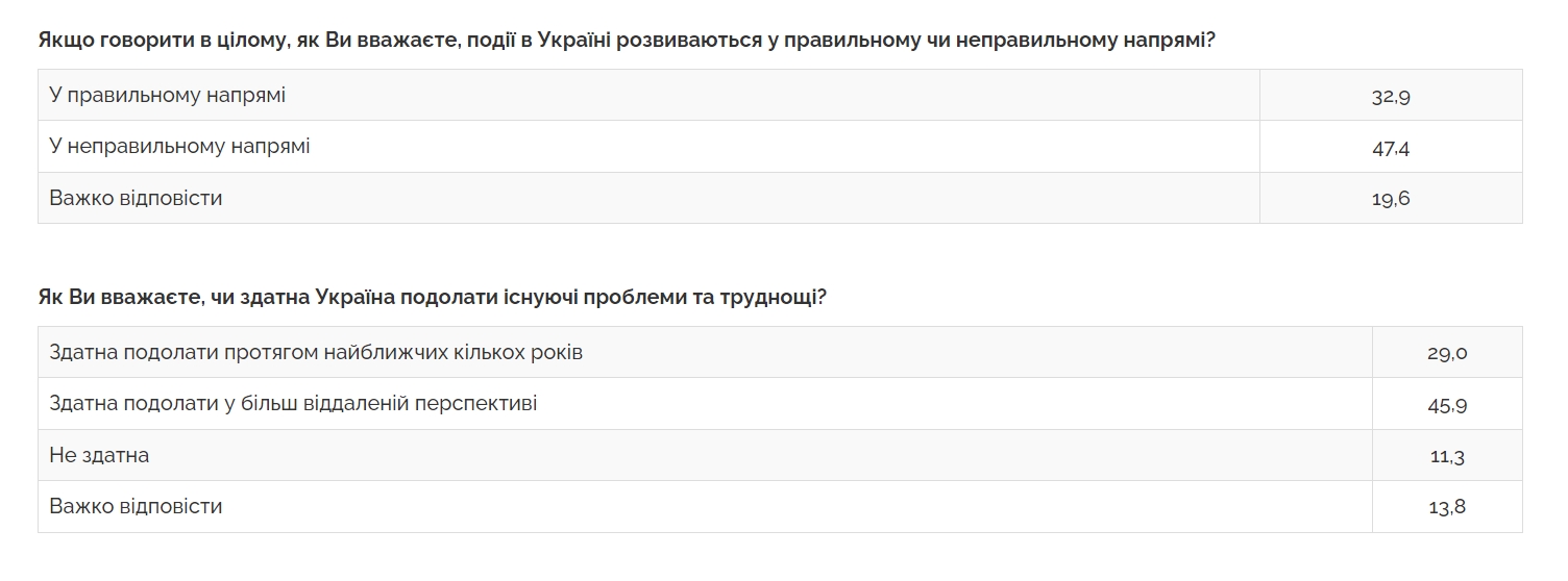 “29% українців вірять, що Україна здатна подолати існуючі проблеми та труднощі протягом найближчих кількох років, 46% вважають, що Україна зможе подолати проблеми у більш віддаленій перспективі”, – вказують дослідники.