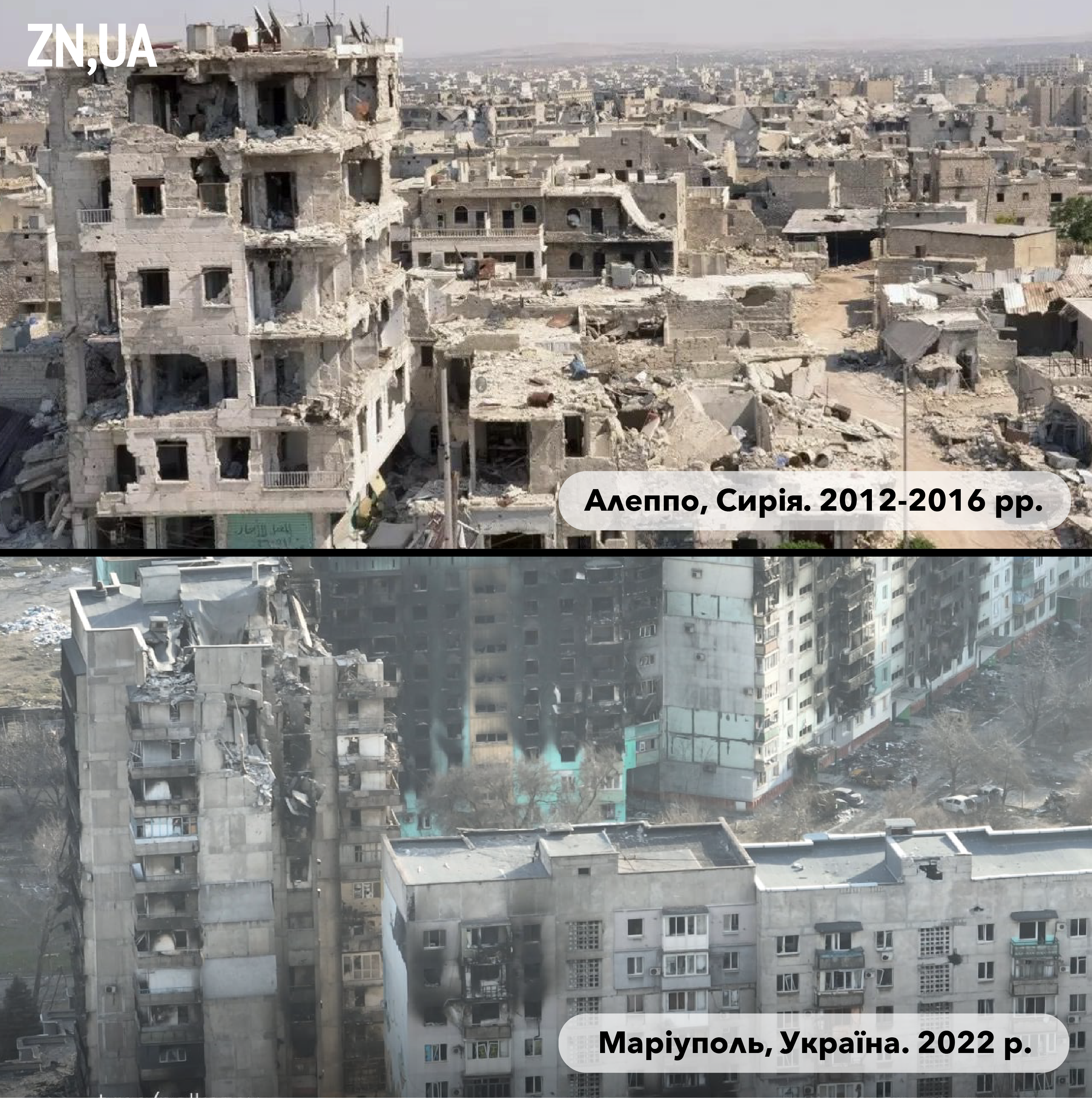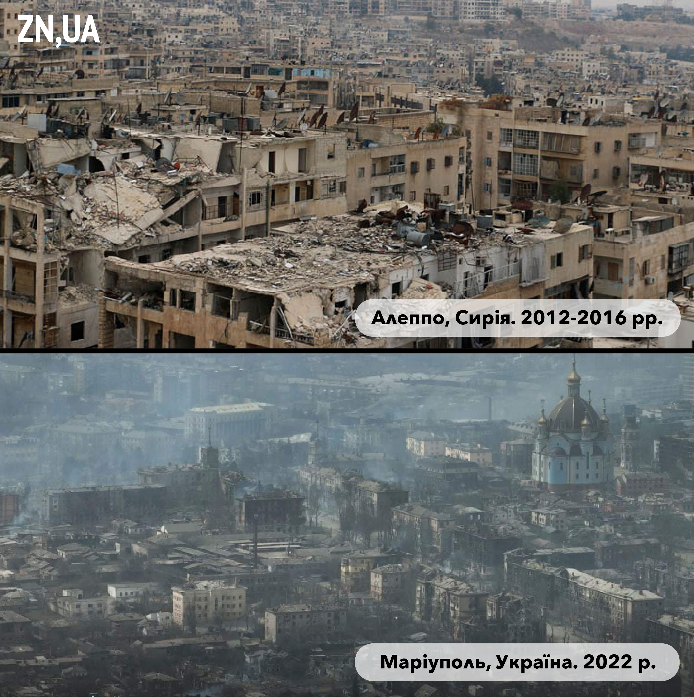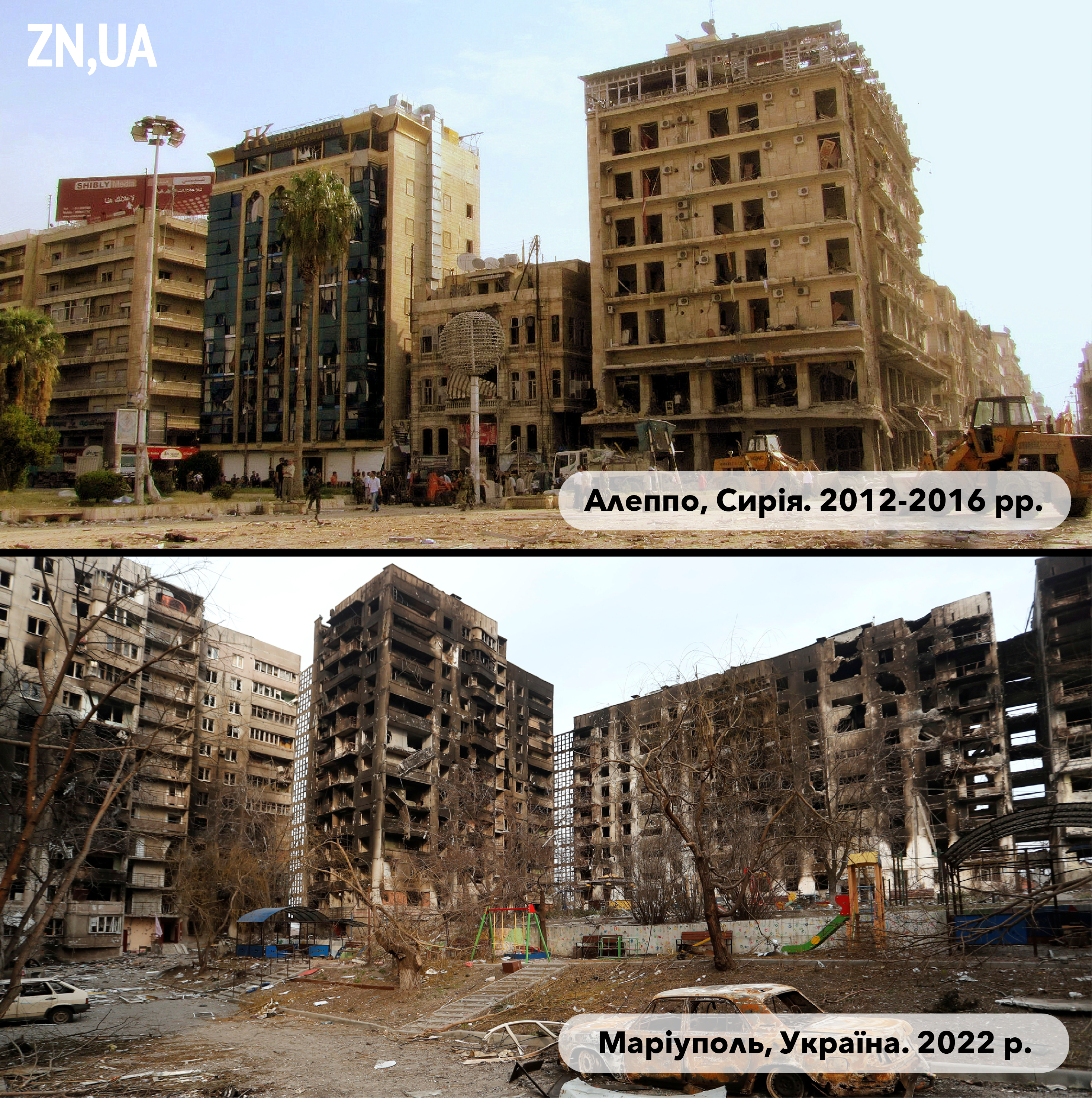 У 2011 році російські загарбники почали знищувати Алеппо в Сирії. Місто зазнало жорстокого бомбардування, проти людей застосували хімічну зброю. Війна перетворила Алеппо на руїни та братські могили. Для багатьох бомбардування українського Маріуполя стало повторенням Алеппо. Редакція ZN.UA порівняла ці трагедії.