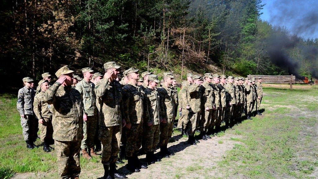 Випускники Військового інституту КНУ ім. Тараса Шевченка пройшли фінальне випробування курсу психологічної підготовки на полігоні в Київській області. Курсантам довелося пройти смугу перешкод з вогнем, колючим дротом, автоматними чергами, димовими завісами, водними ямами.