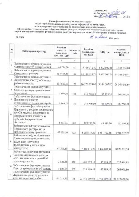 Мін'юст 31 жовтня уклав відповідну угоду з ДП "Національні інформаційні системи ("НІС"). У перелік входять 17 реєстрів, держателем яких є Мін'юст, термін забезпечення - 122 дні у вересні-грудні, пишуть "Наші гроші".