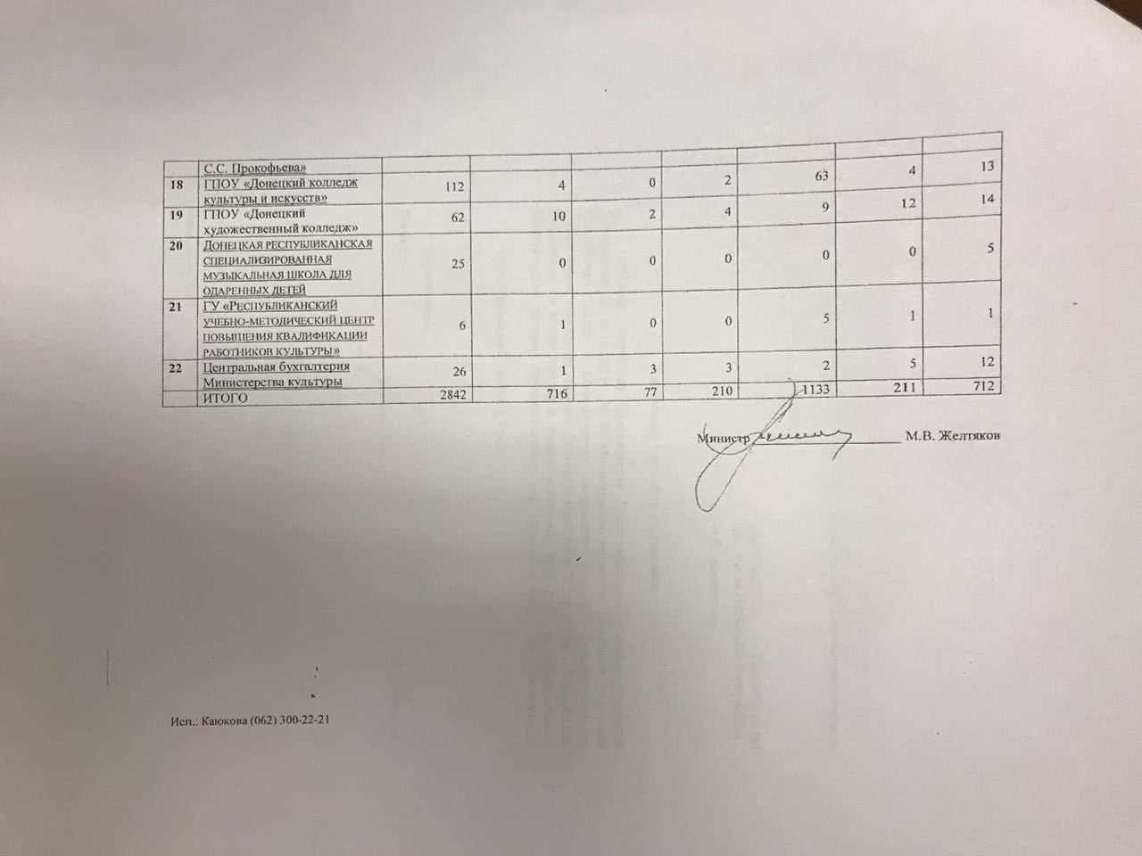 Загальний штат співробітників так званого "Мінкульту" та працівників відомчих закладів (театрів, музеїв, бібліотек, цирку і навчальних закладів), які функціонують на окупованій території, становить 2842 людини.