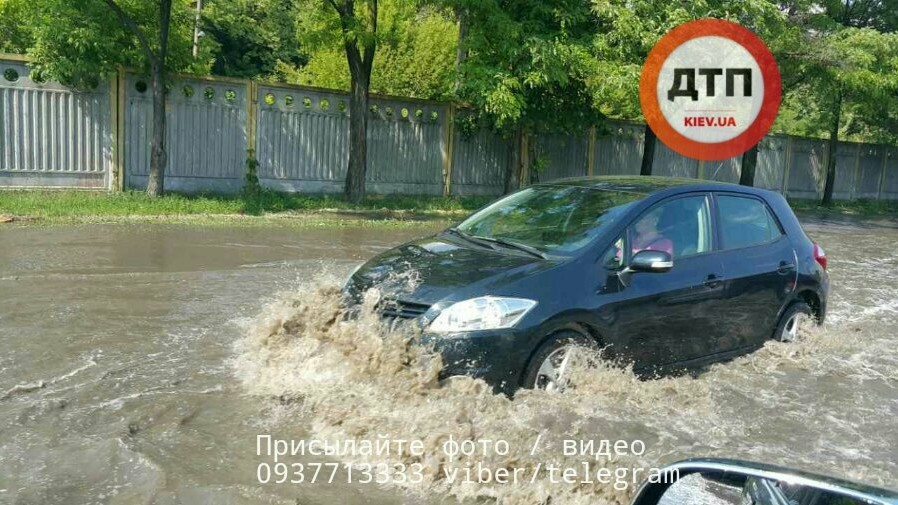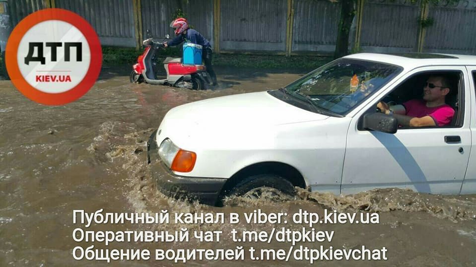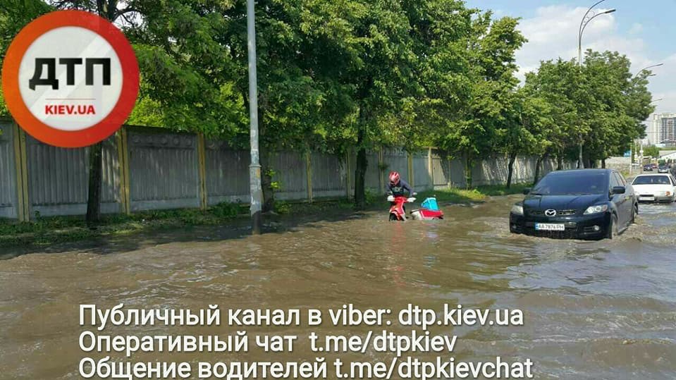 Неподалік від метро "Деміївська" зливою затопило вулицю Кіровоградську.