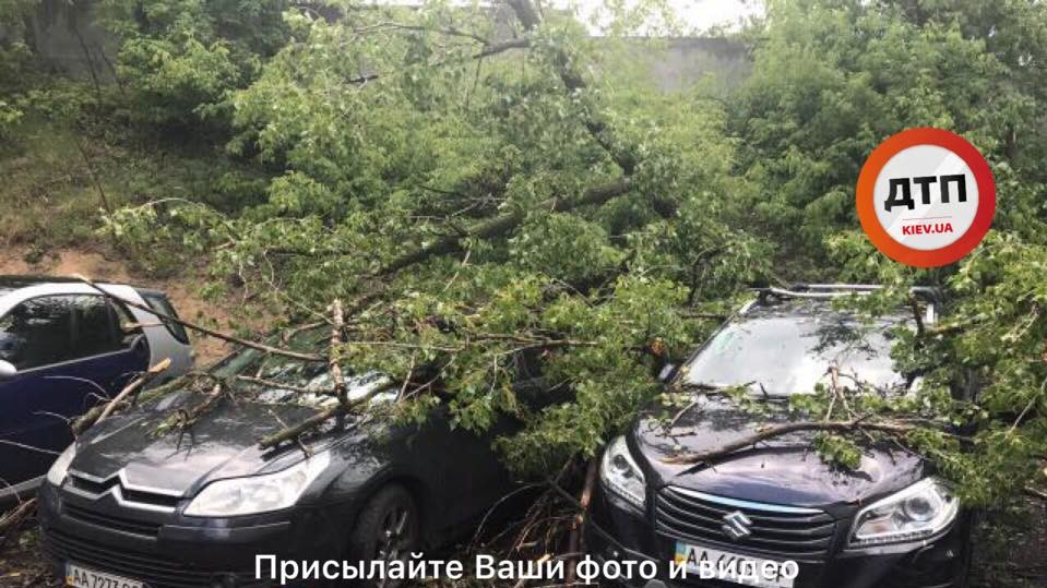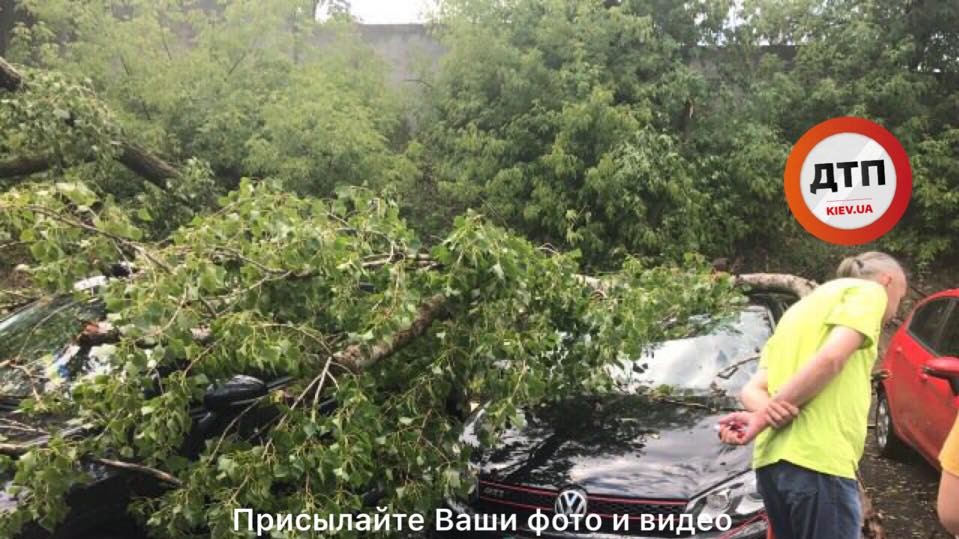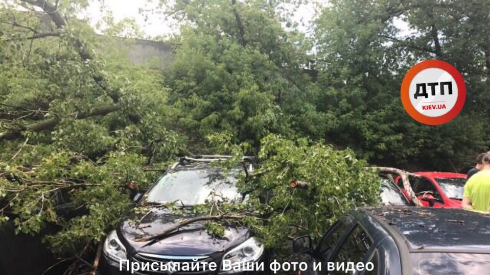 Так, на вулиці Смольной біля метро "Васильківська" дерево впало на припарковані автомобілі. За інформацією ТСН, пошкоджено п'ять машин.