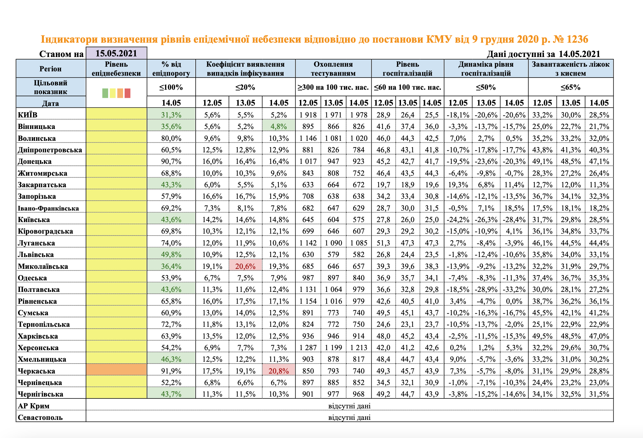 Також дев'ять регіонів можуть претендувати на "зелену" зону по одному з показників - це Київ, Вінницька, Закарпатська, Київська, Львівська, Миколаївська, Полтавська, Хмельницька та Чернігівська області.