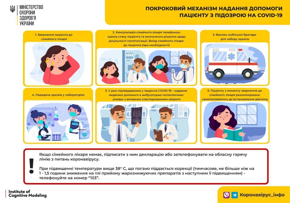 Міністерство охорони здоров’я оновило алгоритм лікування людей із симптомами коронавірусної хвороби. Покроковий механізм надання допомоги складається із шести етапів.