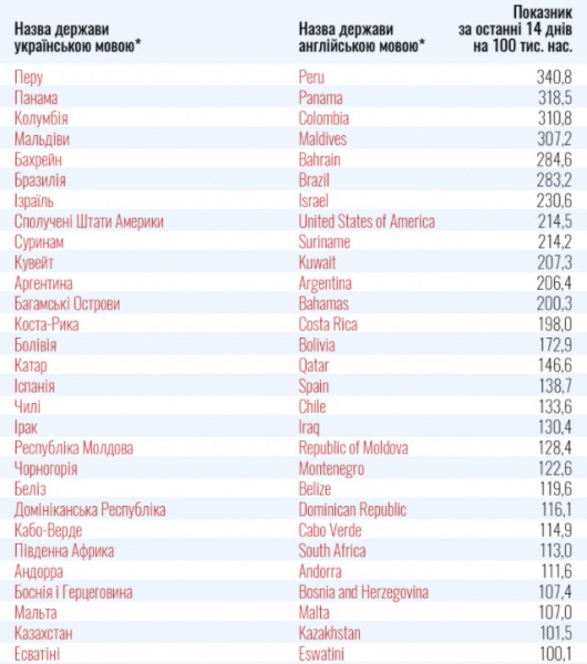 У Міністерстві охорони здоров'я опублікували новий розширений список іноземних «червоних» зон. Про це повідомила пресслужба відомства.