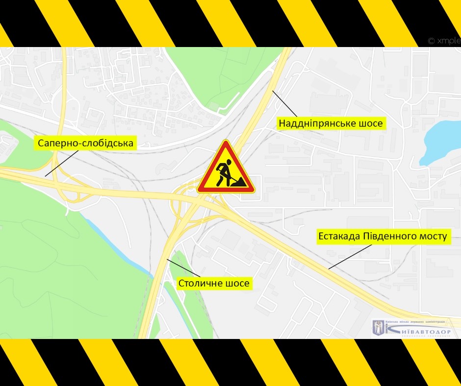 У Києві на естакаді Південного мосту відсьогодні, 27 листопада, до 8 грудня частково обмежуватимуть рух під час ремонтних робіт, повідомляють у комунальній корпорації "Київавтодор".