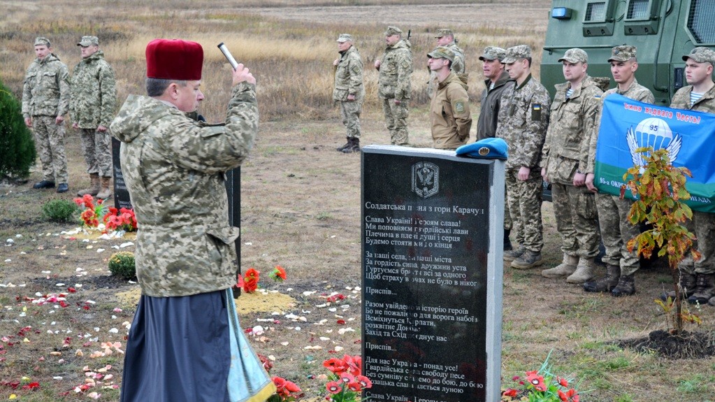 Військовий капелан 81-ї окремої аеромобільної бригади Збройних сил України отець Василь провів освячення пам'ятника та поминальну літургію.